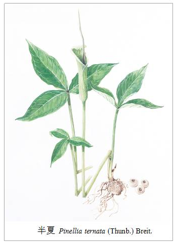 半夏:源于天南星科半夏屬植物半夏Pinellia ternata(Thunb.) Breit.的干燥塊莖。