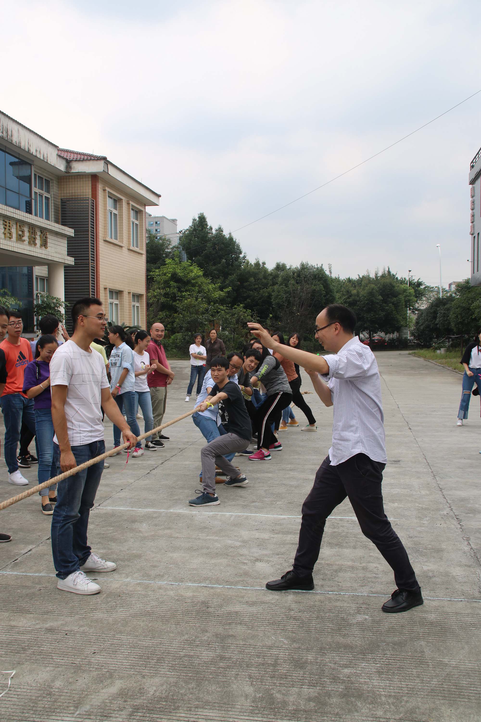 還有....不服的看官請(qǐng)找大神挑戰(zhàn),13人一隊(duì),隊(duì)員動(dòng)作齊整,仿佛自帶大力神,真是四兩撥千斤啊!拔河賽冠亞軍爭奪賽中,“打敗所有”隊(duì)的女神(也可以說是女漢子)同樣驚艷全場。拉繩的動(dòng)作和力量那叫一絕,力拔山兮氣蓋世,巾幗不讓須眉,有如此技能,取得拔河賽冠軍的成績,也就不足為奇了。