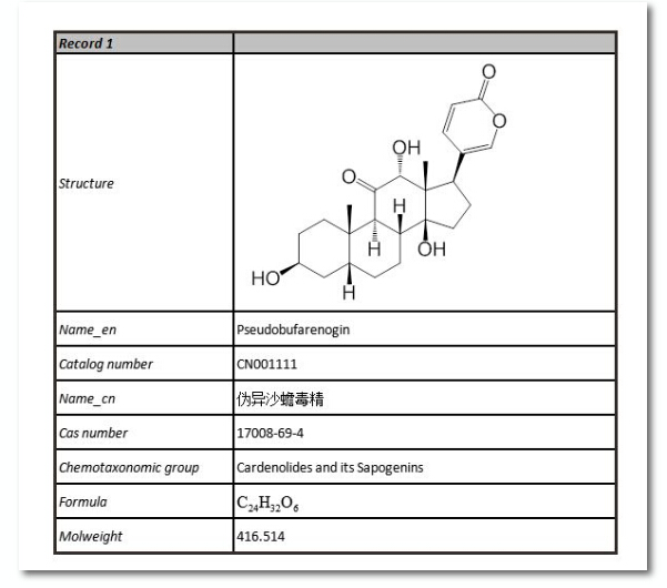 普思生物是一家專業(yè)從事天然藥物分離純化并提供藥物技術(shù)研究服務(wù)的國(guó)家高新技術(shù)企業(yè)。目前我司共有20多種蟾酥系列活性成分——酯蟾毒配基、蟾毒靈、蟾毒它靈、遠(yuǎn)華蟾蜍精、沙蟾毒精、日蟾蜍他靈、華蟾毒它靈、偽異沙蟾毒精、華蟾蜍精、去乙酰華蟾毒精、去乙酰華蟾毒它靈、南美蟾毒精、蟾蜍色胺、蟾蜍它里定、嚏根草醇、19-羥基蟾毒靈、華蟾毒精醇、酯蟾毒精、異沙蟾毒精、19-氧代華蟾毒它靈、19-氧代華蟾毒精等,部分產(chǎn)品信息如下: