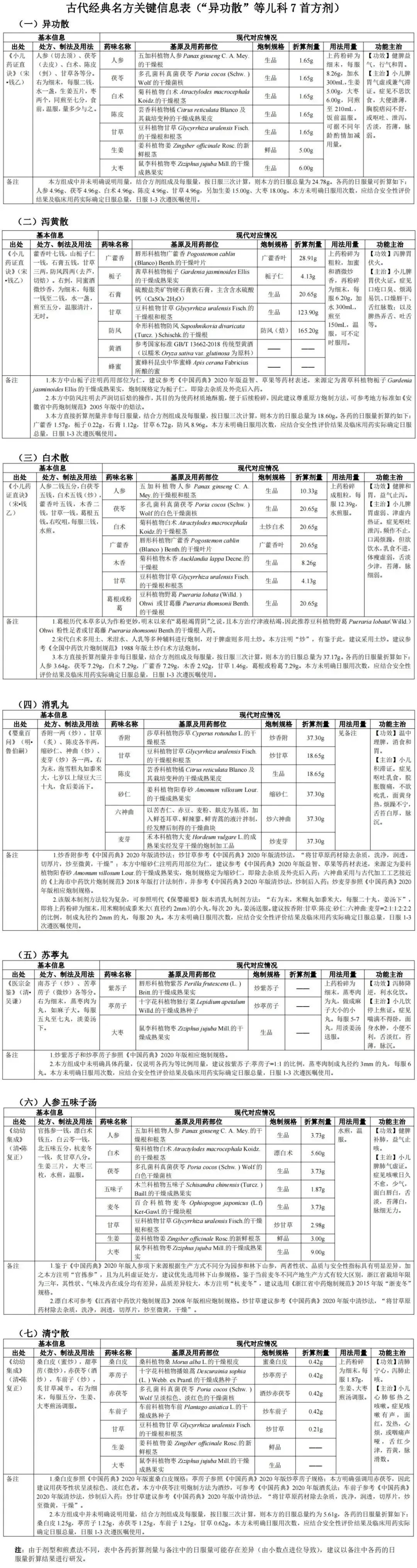 關(guān)于發(fā)布《古代經(jīng)典名方關(guān)鍵信息表(“異功散”等兒科7首方劑)》的通知