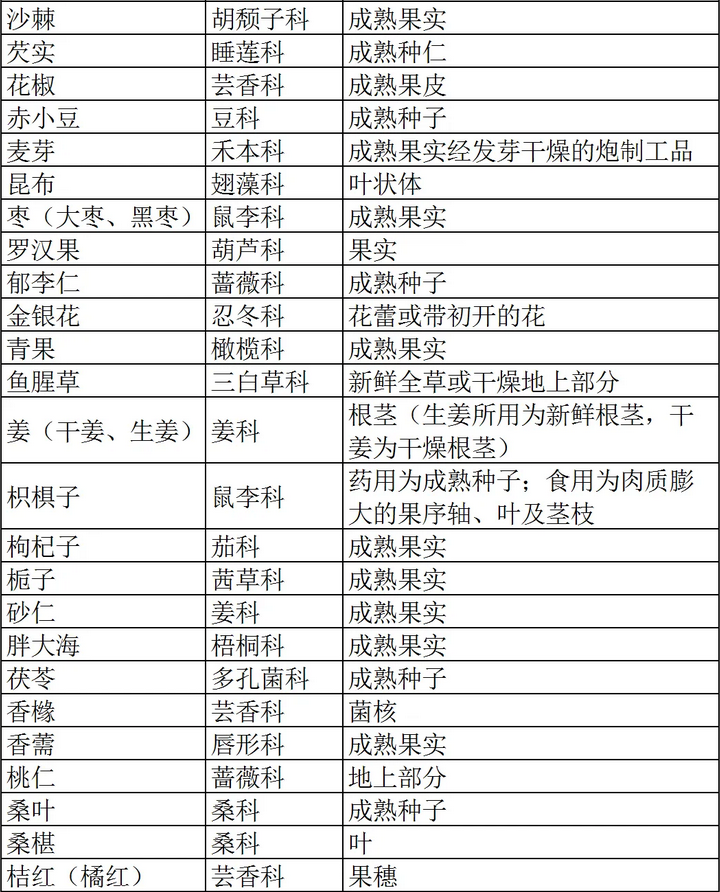 衛(wèi)健委公布的可用于保健食品的中藥名單