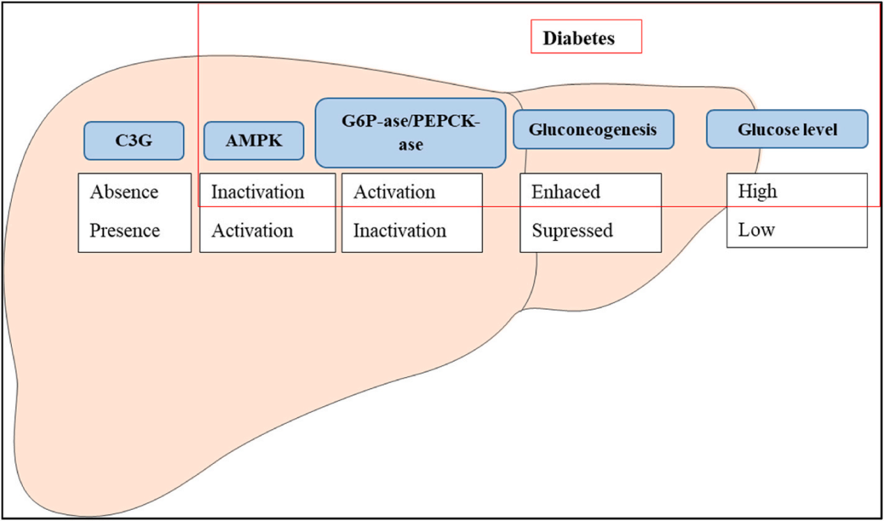 C3G通過激活A(yù)MPK途徑抑制肝臟糖異生,并能誘導(dǎo)氧化應(yīng)激下的癌細(xì)胞衰老和凋亡。