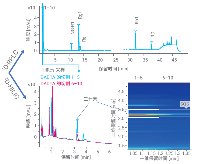 對于復(fù)雜樣品或化藥雜質(zhì)分析,常需要復(fù)雜的液相方法開發(fā)和含非揮發(fā)性鹽流動相,二維色譜相較于傳統(tǒng)一維色譜而言,無需繁瑣的前處理方法、復(fù)雜的色譜條件,還可以使用含鹽流動相。二維色譜是傳統(tǒng)液相色譜的補充,不僅能提高復(fù)雜組分的分離能力,而且能夠?qū)崿F(xiàn)在線脫鹽。
