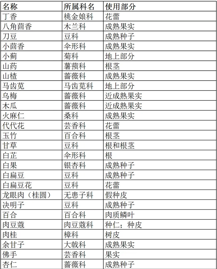 衛(wèi)健委公布的可用于保健食品的中藥名單