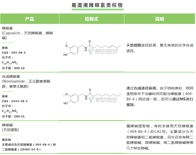 辣椒素(Capsaicin)是一種無(wú)色無(wú)味的生物堿類化合物。其作為辣椒中的主要活性成分,是TRPV1受體激動(dòng)劑,具有減輕疼痛、抗氧化、抗炎、神經(jīng)保護(hù)和抗癌作用,近年來(lái)在醫(yī)藥食品、化妝品等領(lǐng)域的研究中受到了廣泛關(guān)注。本文將深入介紹辣椒素的基本信息、理化性質(zhì)、藥理活性作用,及其在醫(yī)藥、食品等領(lǐng)域的應(yīng)用。(ps.文末有易混淆辣椒素類似物區(qū)分要點(diǎn)哦?。?/span>
