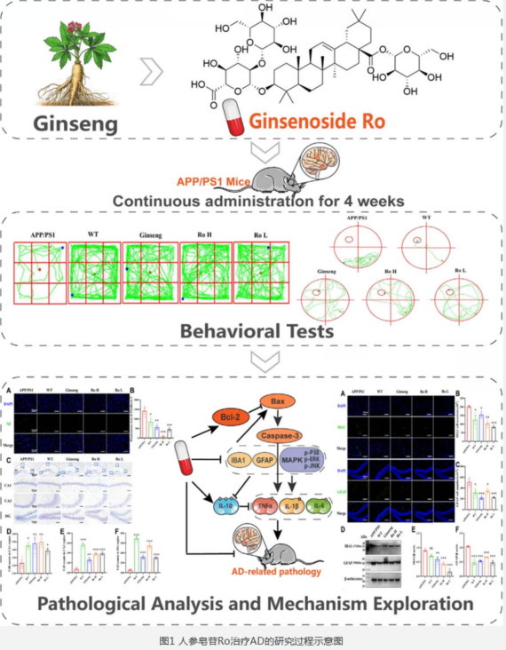 人參皂苷Ro通過減少Aβ沉積、改善神經(jīng)元凋亡和神經(jīng)炎癥,以及調(diào)控MAPK通路來實現(xiàn)改善空間探索能力、記憶認知功能。具有開發(fā)成為AD治療藥物的潛力。[5][6]