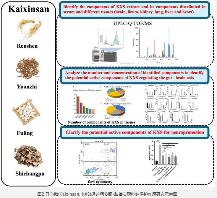人參皂苷Ro作為開心散(Kaixinsan, KXS)的重要活性成分,通過調(diào)節(jié)腸-腦軸實現(xiàn)神經(jīng)保護作用。為KXS在防治阿爾茨海默病、抑郁癥等神經(jīng)退行性疾病中的應用提供了理論依據(jù)。[7]