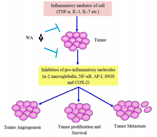 圖2 醉茄素A對腫瘤抑制的作用機(jī)制及信號通路[2]
